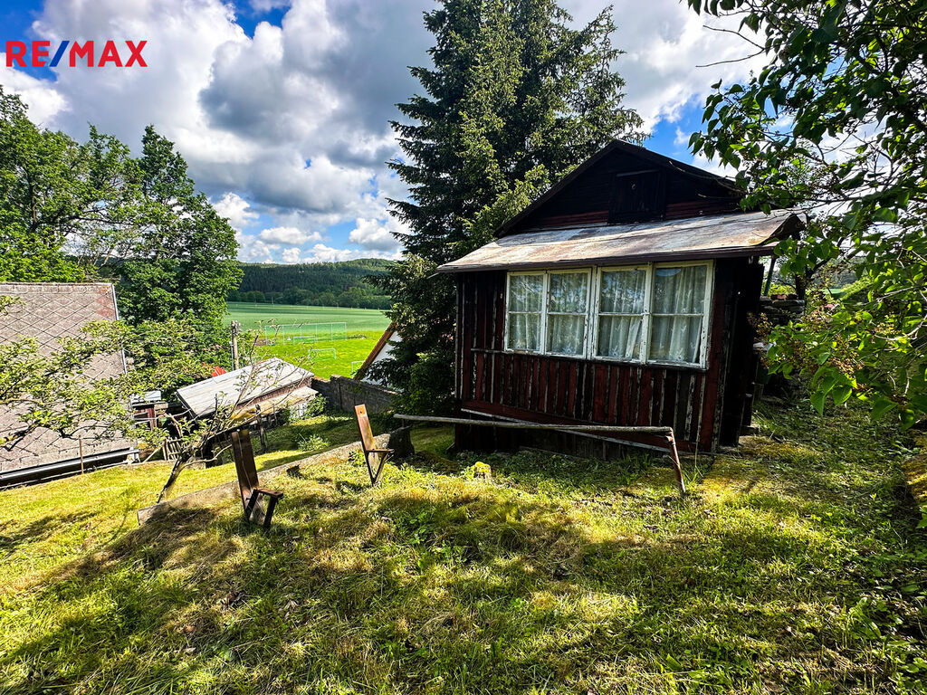 Tento dům stojí na terasovité zahradě, která sama vybízí k tichému rozjímání a posezení s výhledem do širého kraje. I když zahrada nyní čeká na nového pěstitele, její půda je stále bohatá a úrodná – právě zde rostou jedny z nejlepších maliňáků v celé obci. Jako dům pro hosty, ateliér či místo pro relax pod širým nebem se nabízí zahradní domek s kamny v horní části zahrady. Fantazii se meze nekladou.