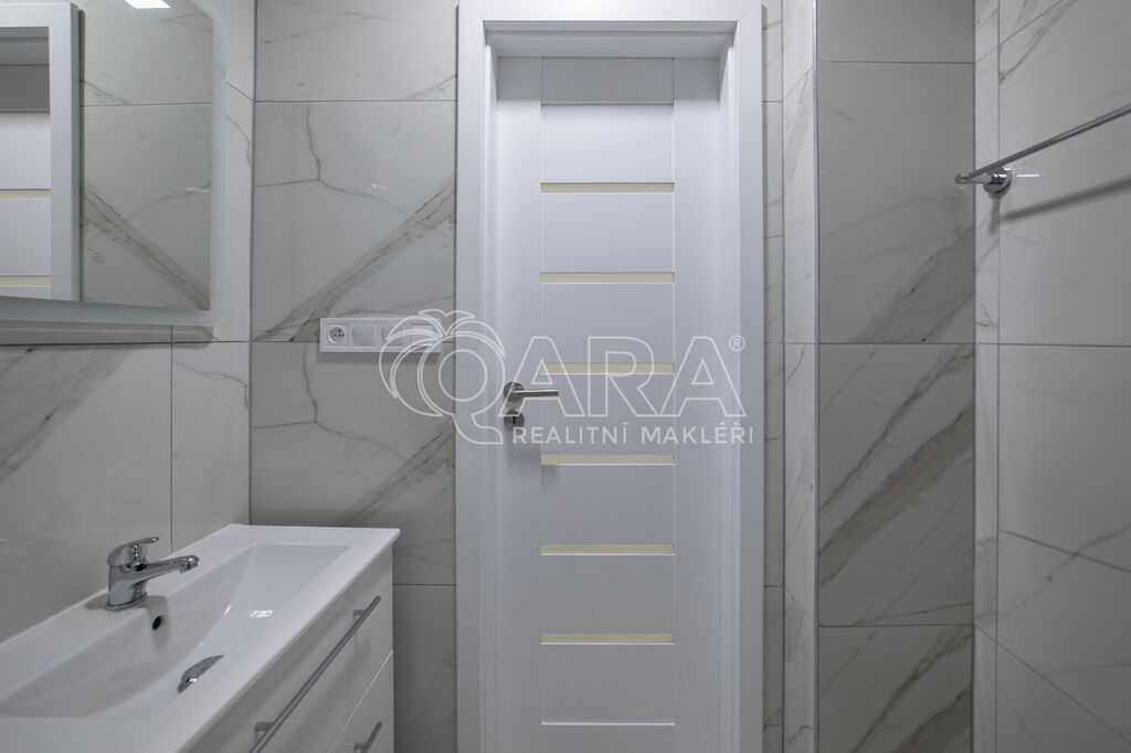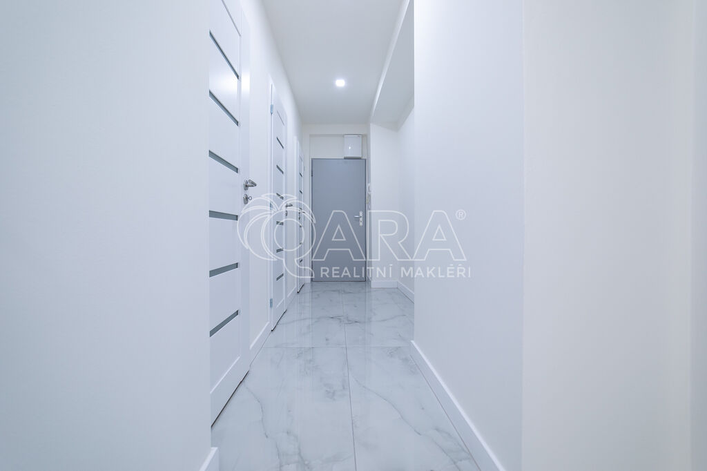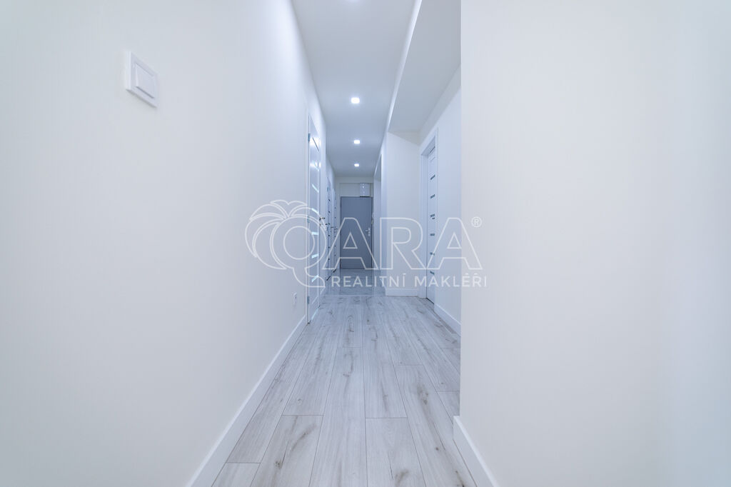 Aktuálně celý byt prošel celkovou a velmi zdařilou rekonstrukcí. Nová elektroinstalace, nové rozvody vody i odpadu, nové příčky včetně štukových omítek, nové podlahy včetně krytin, nová koupelna s vanou, oddělené toaleta, oddělená technická místnost s pracím koutem. Nová kuchyňská linka včetně vestavěných spotřebičů.