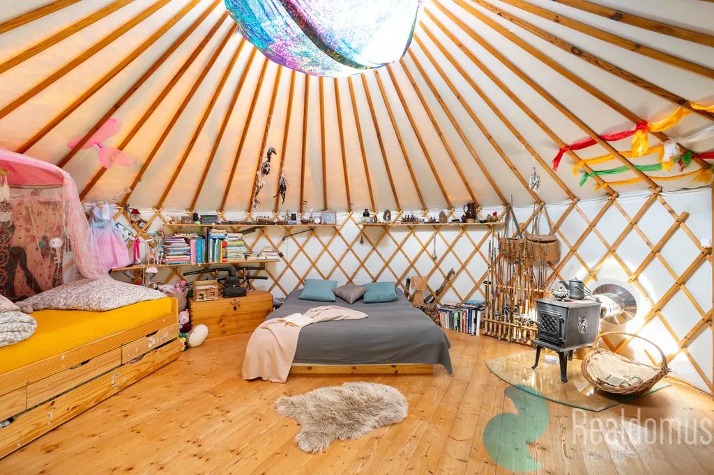 Vedle stodoly stojí jurta, útulný domov s výhledem do údolí. A právě tam je naplánovaný rybník, který čeká na své první jiskřivé odlesky. U jurty bublá vířivka, vedle se rozpaluje sauna. Kolem bzučí včely, ve skleníku a fóliovníku dozrávají papriky, rajčata a okurky, na zahradě se červenají třešně a dýně.