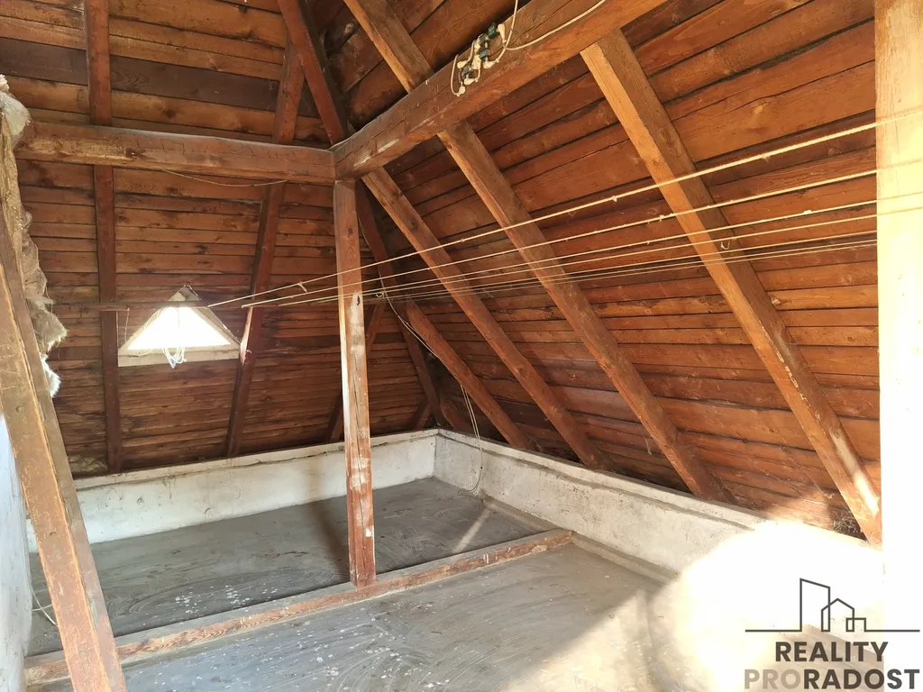 Půdní prostor -jeden pokoj + půdní prostor s možností předělání na další místnost.