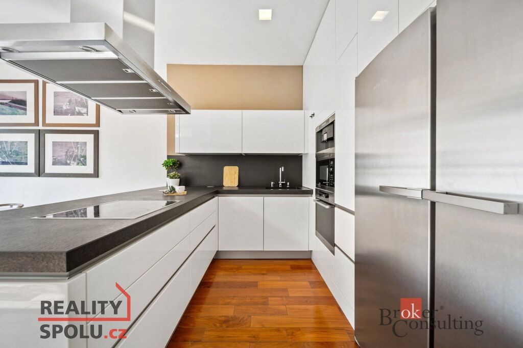 Celý byt je proveden v nadstandardním vybavení, jsou zde použity kvalitní materiály a dispozičně je navržen pro příjemné a komfortní bydlení. Vytápění je centrální, v bytě jsou elektrické vnitřní rolety s dálkovým ovládáním a klimatizační jednotka značky LG s dálkovým ovládáním. Samozřejmostí je prostorná kuchyňská linka včetně spotřebičů od značky Miele, vestavěné skříně a nábytek. Díky velkým oknům je celý byt prosvětlený, vzdušný a nabízí nadčasový design.