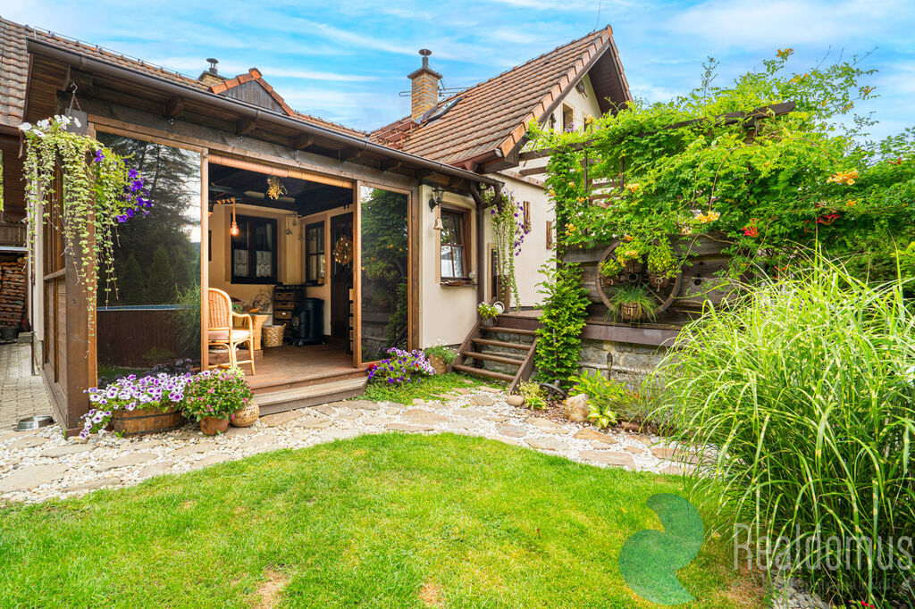 •	Udržovaná zahrada s vlastní studnou, menším jezírkem a bazénem
