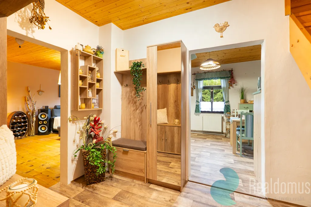 REALDOMUS nabízí ve výhradním zastoupení majitele k prodeji rodinný dům na okraji obce Nahořany nedaleko Českého Krumlova. K domu o dispozici 4+1 náleží krytá veranda, útulná terasa a rozlehlý pozemek, který nabízí nejen dostatek soukromí, ale i prostor pro odpočinek nebo aktivní trávení volného času. Zahrada s menším jezírkem a řadou příjemných zákoutí je ideálním místem pro relaxaci či rodinné posezení. Praktickým bonusem je samostatná dílna, která potěší každého kutila nebo tvořivého ducha.