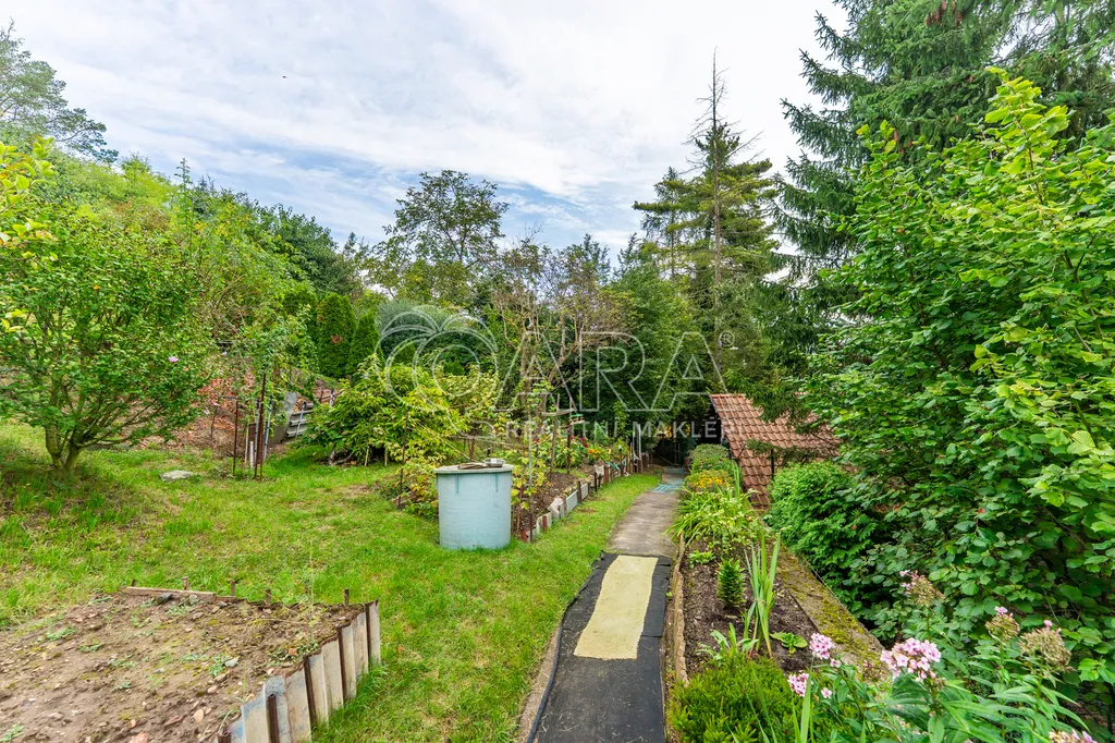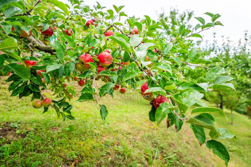Pozemek je svažitý s jižní orientací, což zajišťuje dostatek slunce po celý den. Na zahradě roste velké množství kvalitních ovocných stromů a nechybí ani praktický sklep pro uskladnění ovoce.