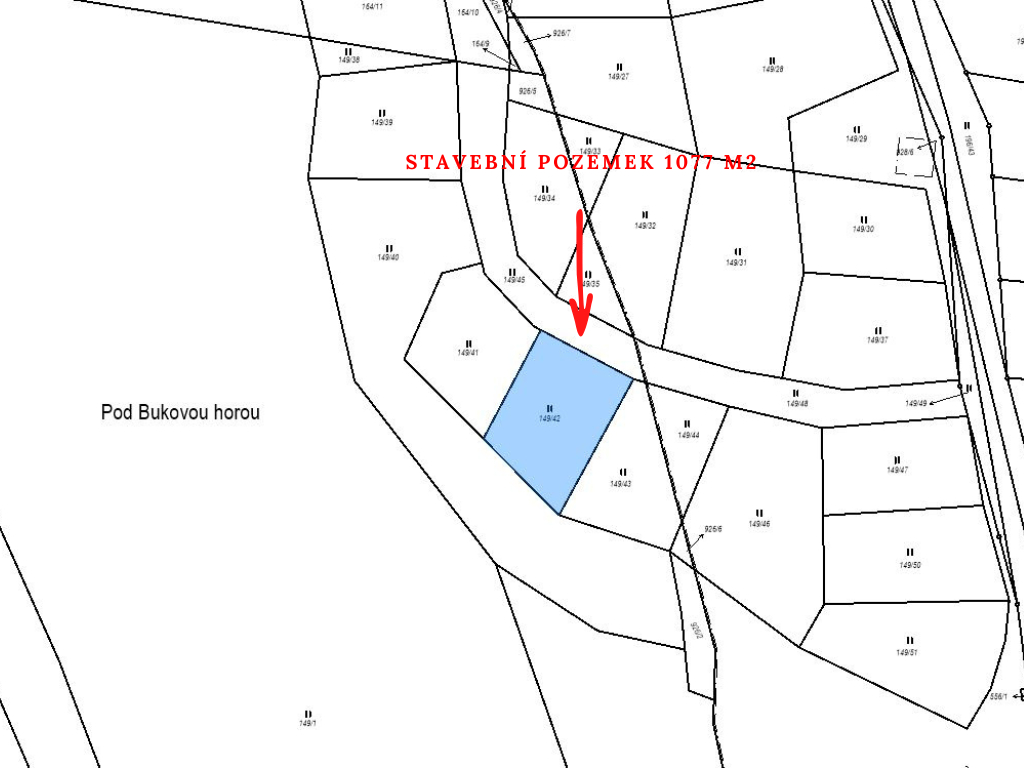 Zasíťovaný stavební pozemek o ploše 1077 m2 v Čenkovicích přímo pod sjezdovkou Buková Hora.