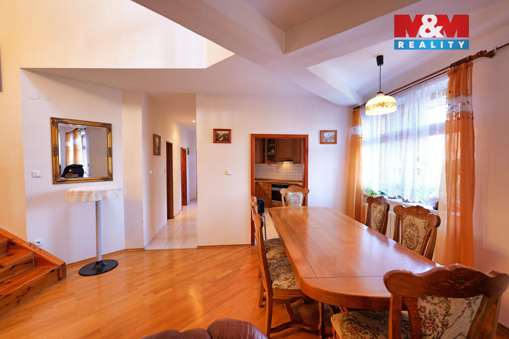 2. nadzemní podlaží – bytová část (10 místností): mezonetový byt 4+1 s koupelnou (rohová vana s vířivkou), WC, vlastní kotelnou a obrovskou terasou. Vzdušný obývací prostor, 2 samostatné pokoje a půda s možností vestavby další místnosti.