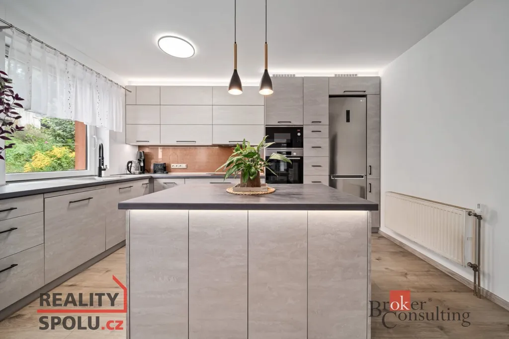 Horní byt zaujme moderní kuchyní, která přirozeně spojuje rodinu a stává se centrem každodenního života.