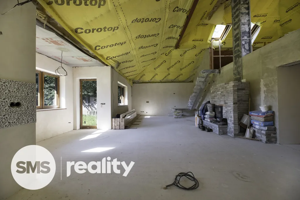 Dům působí moderním, funkčním dojmem. Koupě představuje ideální příležitost pro ty, kteří hledají dům na klidném místě v přírodě s možností dokončení dle vlastních představ.