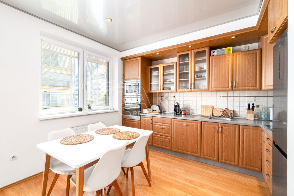 Součástí podnájmu je kuchyňská linka, trouba, myčka, mikrovlná trouba, varná deska a vestavěné skříně.