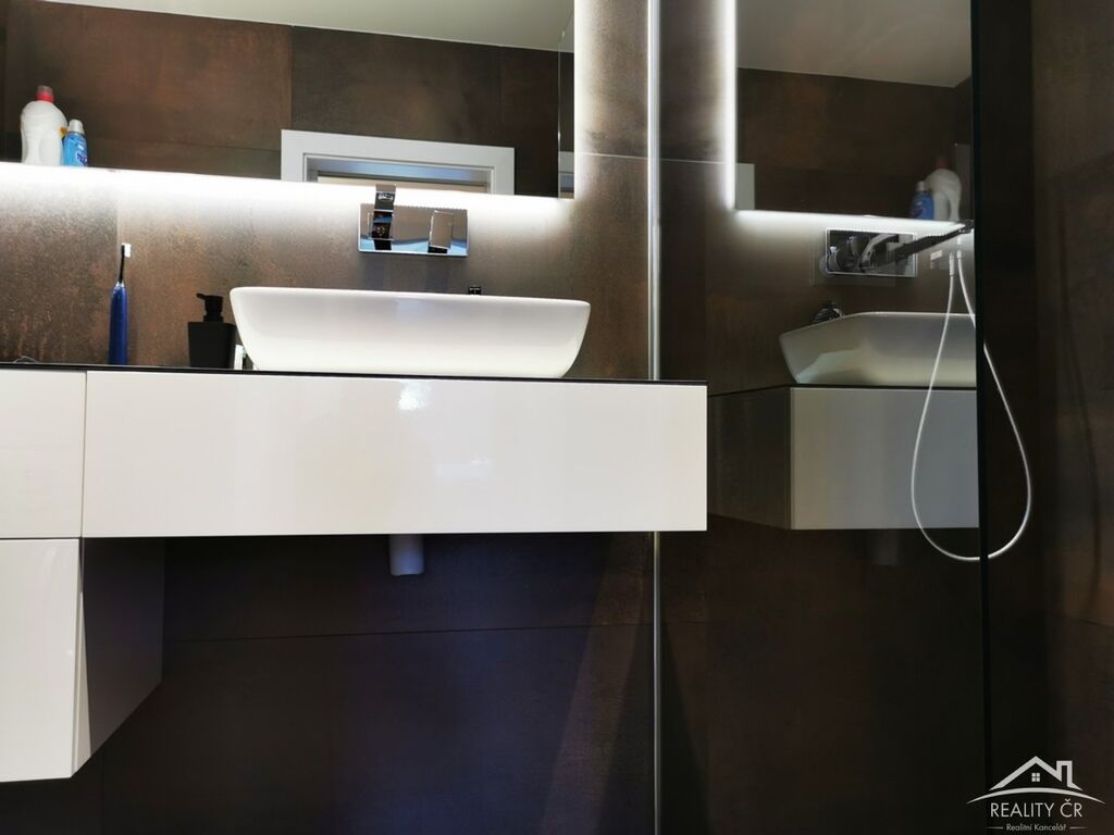 Prodej zánovního luxusního bytu o rozloze 94m2. Moderní bytová jednotka je svou atmosférou a nadstandardní kvalitou provedení s citlivým použitím materiálů sklo, kov, dřevo s důrazem na celkový pocit vzdušnosti a otevřeného prostoru velmi atypická a exklusivní. Ojedinělou koncepcí a charakterem výjimečnosti vyhoví i nejnáročnějším požadavkům současné doby a stylu. Vstupní hala, pracovna s terasou, ložnice, koupelna, toaleta, obývací pokoj s kuchyní 39m2 a terasou. Kuchyně vybavena nejvyšší řadou značkových spotřebičů Siemens, včetně parní trouby, prémiového značkového osvětlení od renomovaného rakouského výrobce, zabezpečovací systém, okna s ochranou proti rozbití, televizor 8K, aj. Parkovací místo v ceně. Financování s dalšími výhodami zajistíme. Více informací na telefonu.