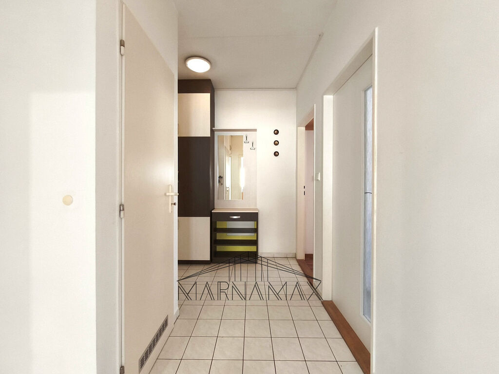 Byt má zděné jádro, samostatné WC a praktickou šatnu. Chodba je prostorná a poskytuje dostatek úložného prostoru.