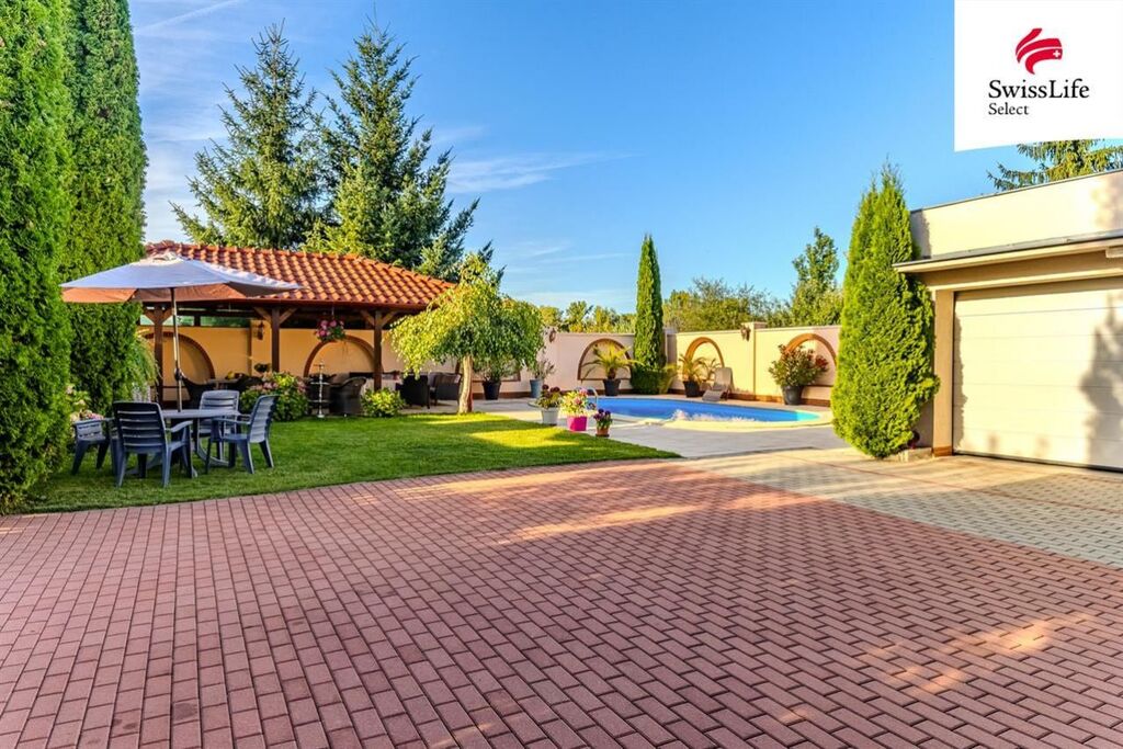 Užijete si velkou terasu i dva balkony, osvěžíte se v bazénu a na zahradě najdete klid i prostor pro rodinná setkání v zahradním domku s kuchyní s nerez spotřebiči. Dům je 2 roky po rekonstrukci, má novou fasádu, zateplení, klimatizaci. Komfortní parkování zajistí dvougaráž s elektrickými vraty. V okolí vás potěší klidná lokalita a přátelské sousedské vztahy