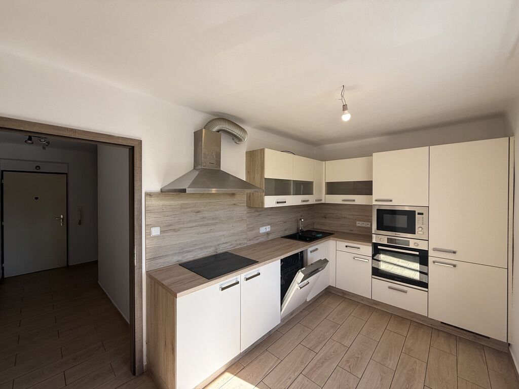 kuchyně s vestavnými spotřebiči (trouba, mikrovlnná trouba, lednice s mrazákem, varná deska, myčka),