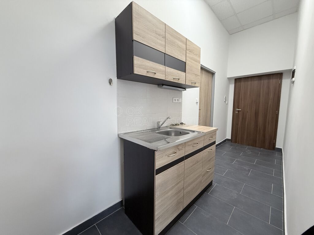 Prostory jsou po rekonstrukci – k dispozici jsou plovoucí podlahy, nová sanita a také praktický kuchyňský koutek, který lze využít jak pro osobní účely, tak i pro pohodlí vašich klientů.