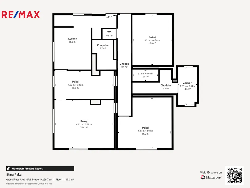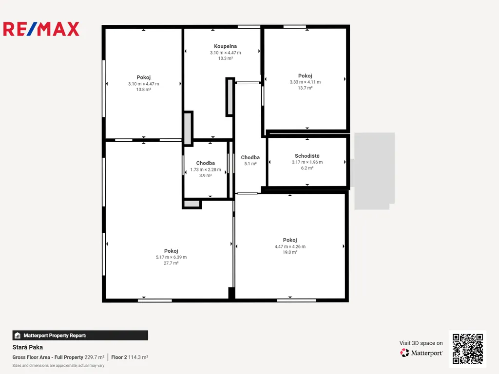 1. patro (≈ 89 m²): čtyři pokoje + prostorná koupelna