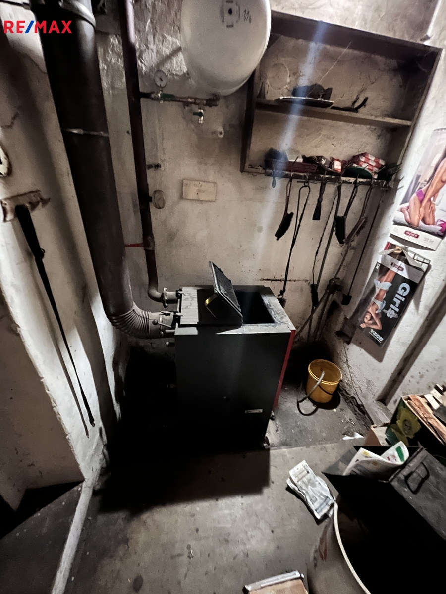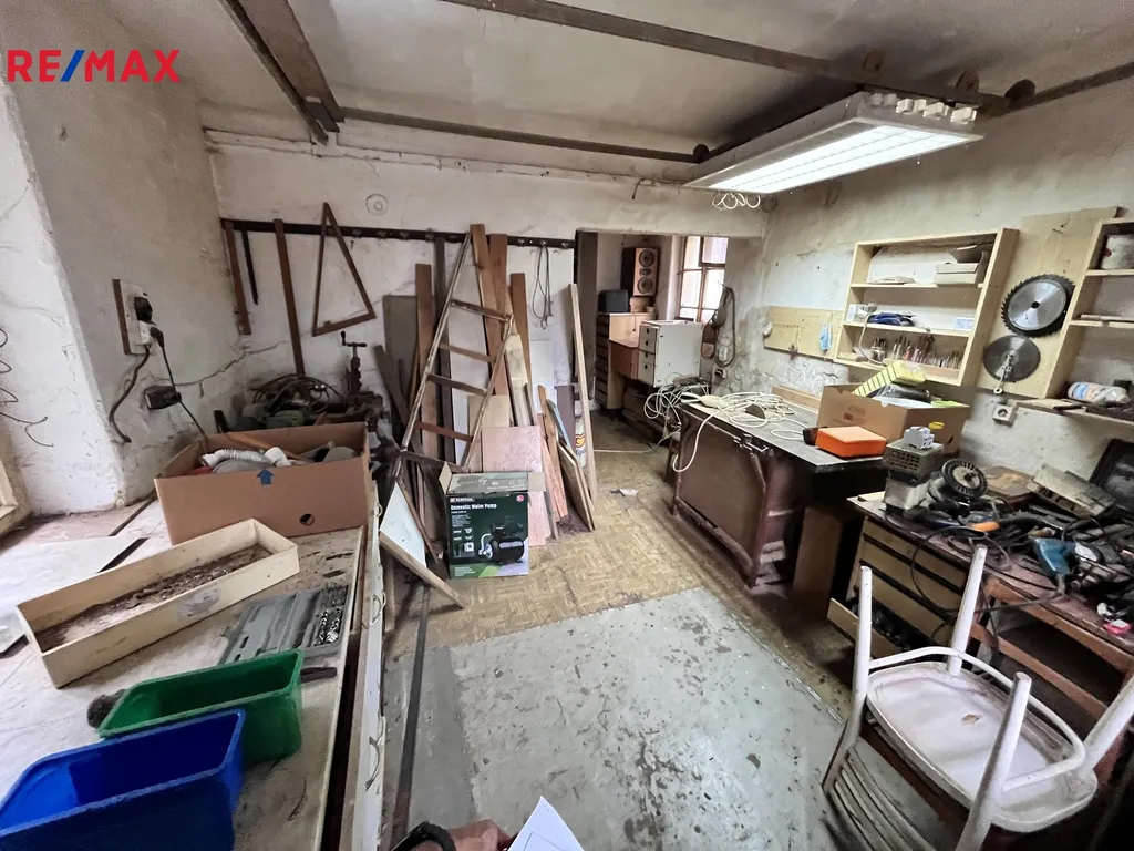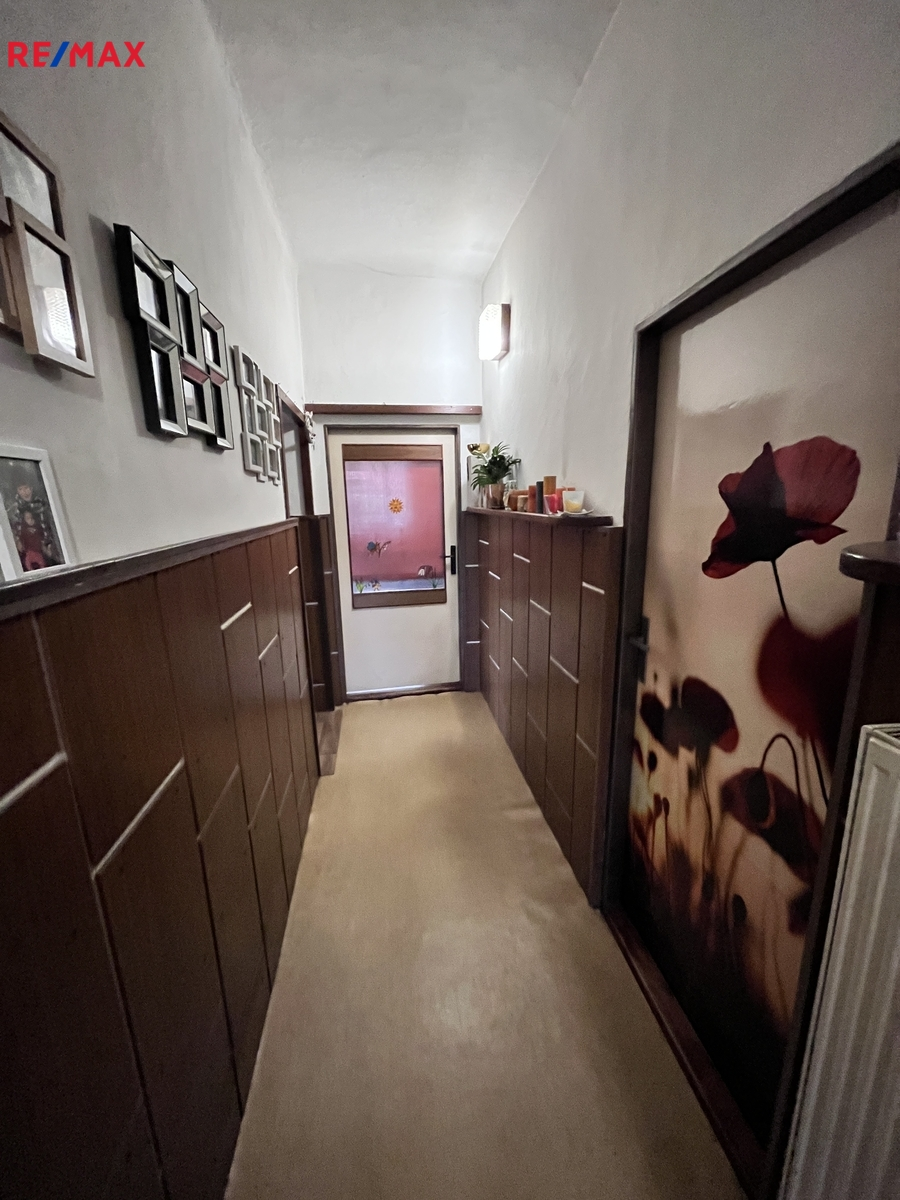 Druhý dům s vlastním číslem popisným tvoří bytová část sestávající z předsíně 6,64m2 čtyř samostatných pokojů 12,75m2, 18,76m2, 15,08m2, 11,02m2, kuchyně 17,11m2, koupelny 3,50m2, prádelny 2,00m2, dále je z předsíně vstup do kotelny. Topení obytné části zajištuje ústředně kotel na tuhá paliva nebo plynový kotel. Oba domy jsou napojené na obecní vodovod i kanalizaci, elektroměry jsou samostatné pro každé č.p.. Střešní krytinu obou domů tvoří eternitové šablony, okna jsou špaletová. K obytné části druhého domu dále navazuje dílna tvořená první částí 17,66m2 a druhou částí 23,64m2 tyto je možné předělat též jako obytné. Ve dvoře je garáž na jedno vozidlo, za domy je uzavřená zahrada 405m2 Pro více informací volejte makléře nabídky.