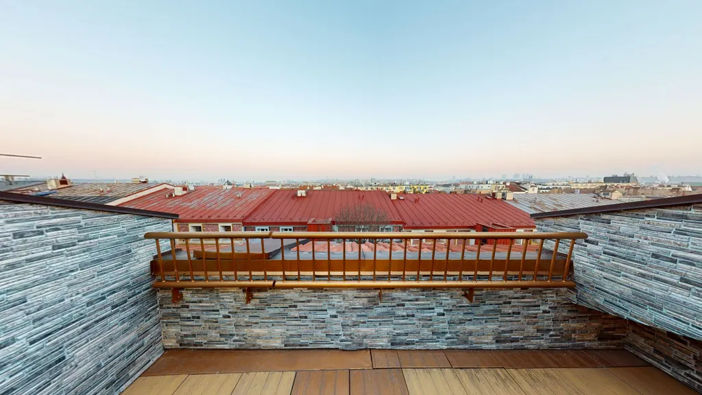 Byt nabízí krásné panoramatické výhledy na historické centrum Prahy, dostatek denního světla a velmi příjemnou atmosféru bydlení.