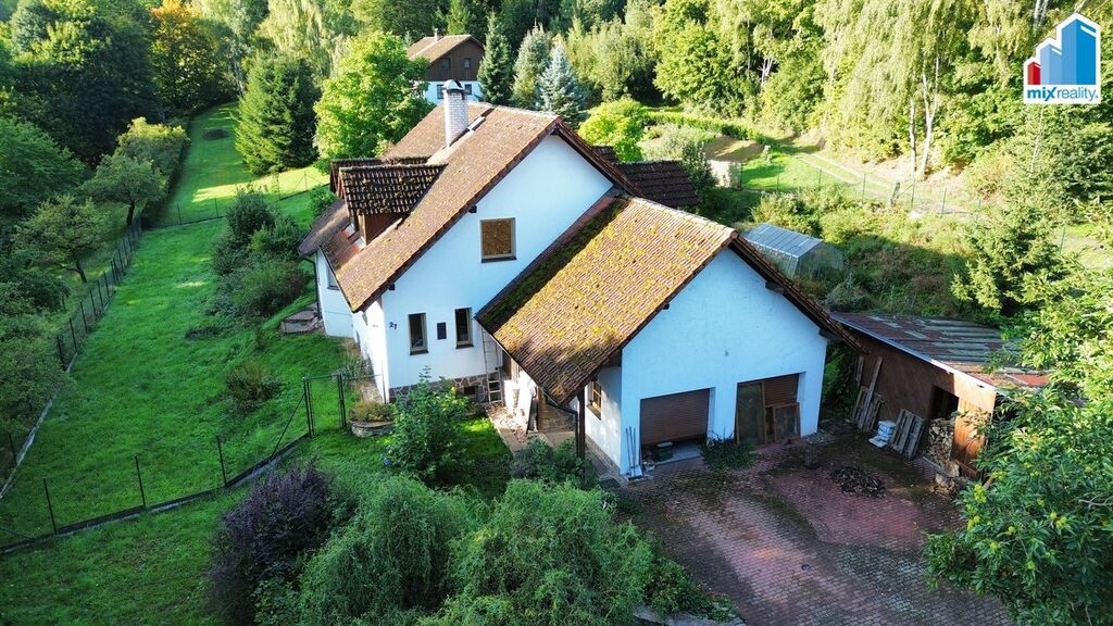 Toužíte po domově v klidné obci obklopené přírodou? Naše realitní společnost Vám s potěšením nabízí k prodeji atraktivní a prostorný rodinný dům o dispozici 5+1 s dvojgaráží a kůlnou, který se nachází v malebné obci Újezd Svatého Kříže nedaleko Bělé nad Radbuzou v okrese Domažlice. Nemovitost stojí na vlastním pozemku o rozloze 2771 m² a je obklopena nádhernou přírodou Českého lesa, která láká k procházkám, cyklovýletům i aktivnímu odpočinku v čistém a klidném prostředí. Dům nabízí zastavěnou plochu 168 m² a užitnou plochu přibližně 226 m². V přízemí se nachází prostorná kuchyně, útulný obývací pokoj, jeden další pokoj, toaleta a vstupní chodba. Podkroví je řešeno jako obytné patro se třemi pokoji a koupelnou vybavenou vanou i sprchovým koutem. Celý dům je podsklepený, což zajišťuje dostatek úložného prostoru i technického zázemí. Vytápění je řešeno elektrickými přímotopy nebo krbovými kamny, ohřev vody zajišťuje elektrický bojler. Dům je napojen jak na obecní vodovod, tak na vlastní studnu, odpad je sveden do tříkomorové jímky. Základy nemovitosti jsou navíc opatřeny protiradonovým odvětráním. Součástí pozemku je rozlehlá zahrada s ovocnými stromy – švestkami, jabloněmi a malinami, kterou doplňuje množství okrasných keřů, skleník i příjemná terasa k posezení. Díky tomu zde najdete ideální místo nejen pro relaxaci, ale i pro pěstování vlastní úrody. Nemovitost je skvělou volbou pro každého, kdo touží po klidném bydlení v krásném a zdravém prostředí, kde příroda doslova začíná za prahem. Veškerá občanská vybavenost je přitom pohodlně dostupná v nedaleké Bělé nad Radbuzou. V případě zájmu Vám rádi zajistíme nejvýhodnější financování na míru zdarma. Vřele doporučuji!