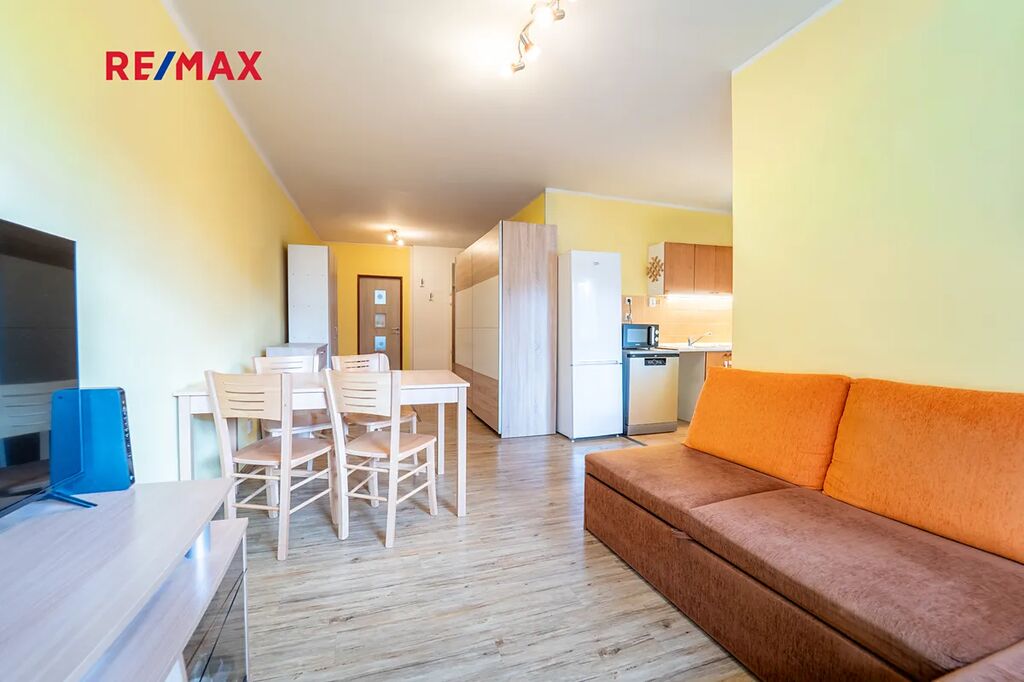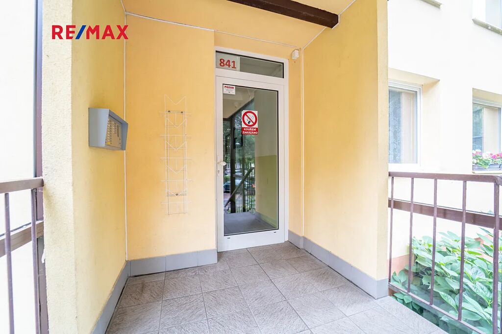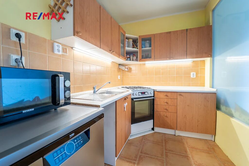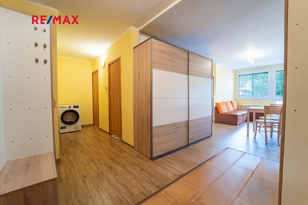Byt je částečně vybaven: vinylové podlahy s dlažbou, vestavěné skříně na míru, věšák s botníkem v chodbě, koupelna s keramickými obklady, umyvadlem a zrcadlovou skříňkou. Samozřejmostí je domácí telefon pro pohodlné vpouštění návštěv.