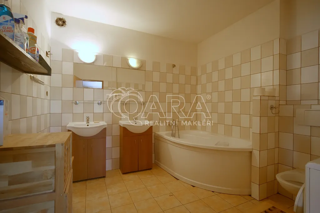 Bytová jednotka je dispozičně řešena velmi prakticky – disponuje kuchyní s jídelním koutem, obývacím pokojem, dvěmi ložnicemi, pracovnou a sociálním zařízením. Díky tomu je možné objekt využívat nejen čistě komerčně, ale také k propojení rodinného zázemí s podnikáním.