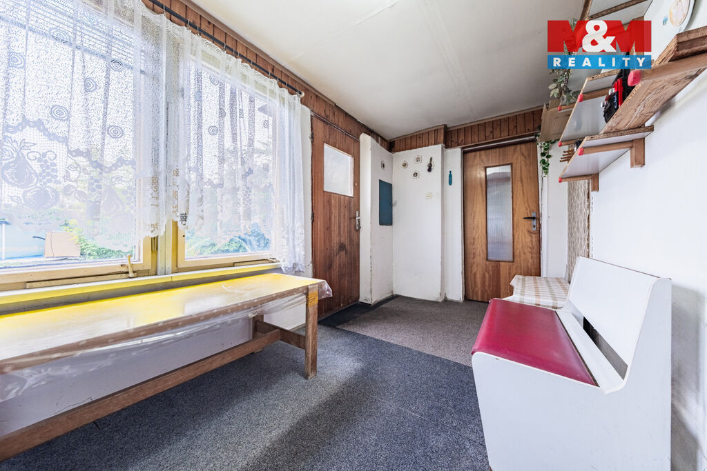 Nabízíme k prodeji útulnou chalupu evidovanou na katastru jako rodinný dům s číslem popisným, v klidné části obce Milčeves, ideální pro víkendové úniky z městského shonu, kde naberete čerstvý vzduch plnými doušky a zrelaxujete se. Chalupa disponuje vstupní chodbou, odkud vedou dveře do samostatného obývacího pokoje, další dveře vedou do průchozí jídelny, na kterou navazuje kuchyně, dále dveře do koupelny s vanou a umyvadlem propojené se splachovacím WC a dveře do ložnice. Objekt poskytuje dostatek prostoru pro rodinu nebo přátele. Celková plocha pozemku činí 682 m², což umožňuje různé zahradní aktivity. Je zde i garáž, odkud zatím vedou schody na půdu, kde se dají zbudovat minimálně další dvě obytné místnosti. Stav nemovitosti je dobrý, což umožňuje okamžité užívání. Nechte se okouzlit klidem a malebnou atmosférou této nemovitosti! Pro bližší informace si domluvte prohlídku s makléřkou. Vhodnou formu financování Vám můžeme zajistit prostřednictvím našeho vlastního hypocentra.
