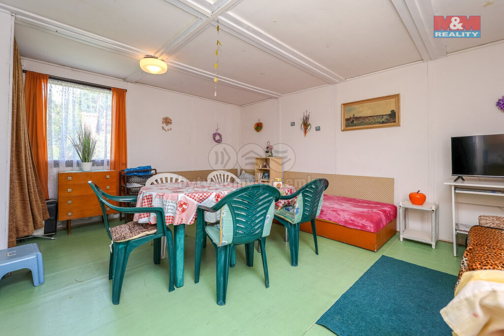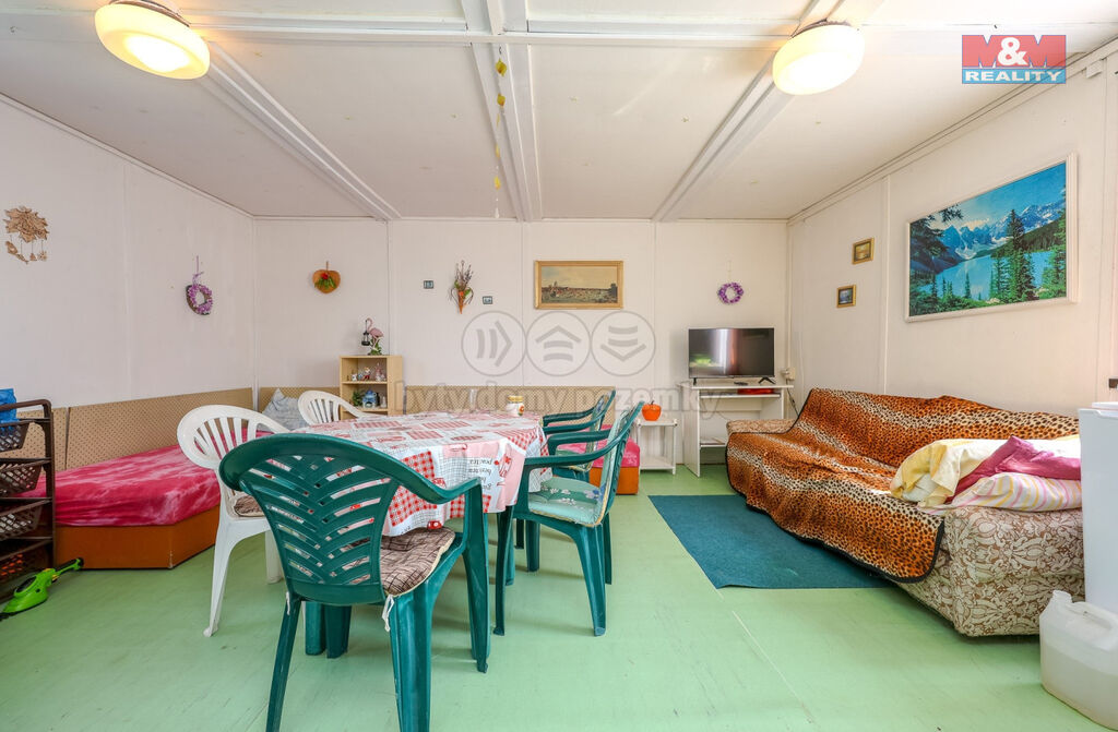 Chata má prostornou místnost, která poskytuje dostatek místa pro odpočinek a ubytování. Součástí je také sklep vhodný pro skladování potravin či uskladnění sezónního vybavení. Pozemek je kompletně oplocený, což zajišťuje soukromí a bezpečí.