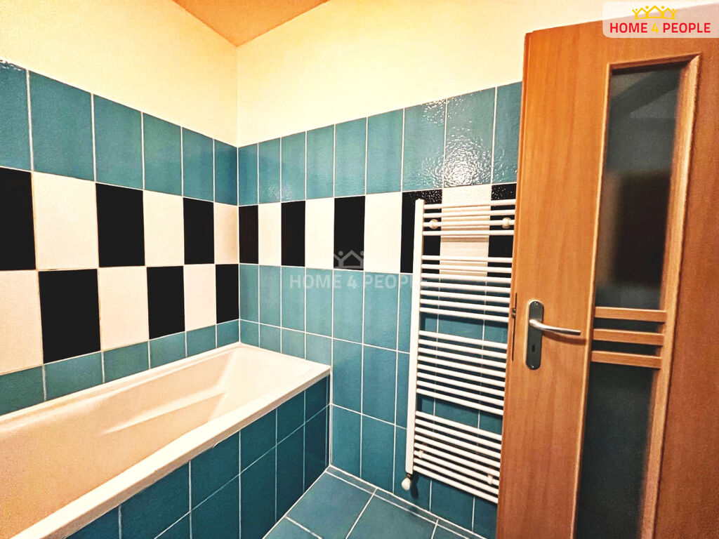 Kuchyňská linka je vybavena veškerými spotřebiči vč. myčky. Koupelna s vanou, umyvadlem a místem na pračku. WC je samostatné.
