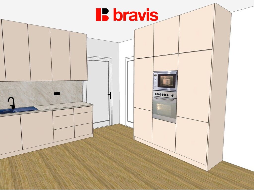 Celková plocha bytu činí 75 m². Kuchyňská linka je aktuálně ve fázi realizace a její součástí budou i spotřebiče jako lednice, trouba, sporák, digestoř a myčka.