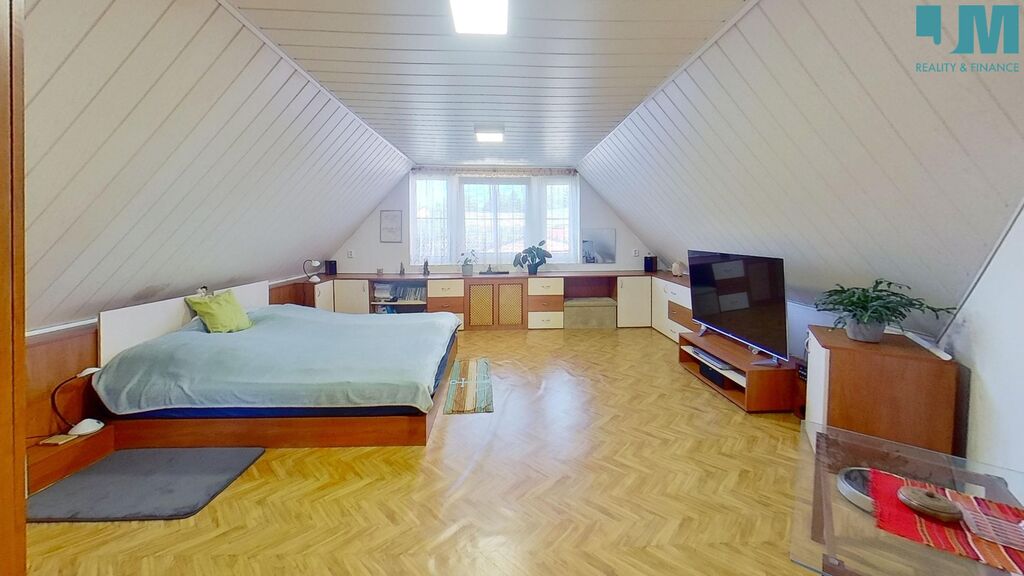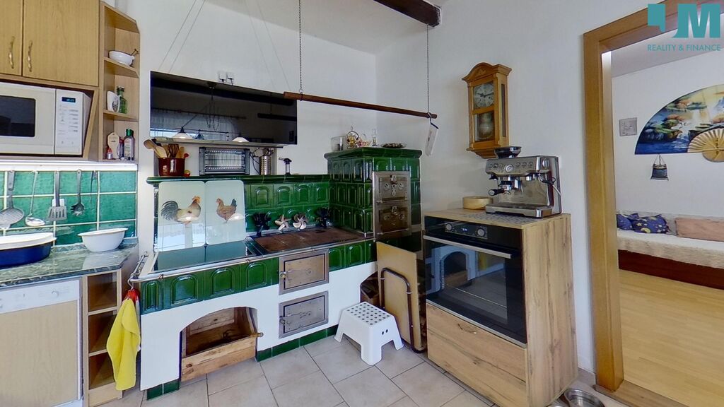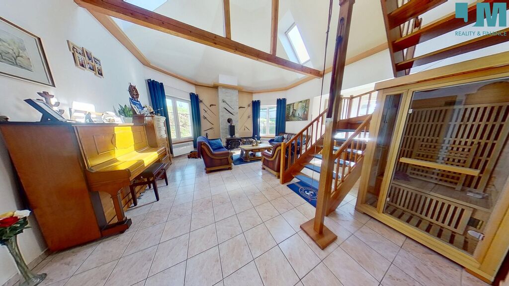 Rád Vám zprostředkuji prodej krásného a prostorného domu v obci Horní Lhotice, která je vzdálena 6km od Náměště nad Oslavou. Dům je zateplený, okna plastová, o vytápění domu je elektrickými přímotopy, případně je možné využít i krb. Do domu je přiveden obecní vodovod a nebo je možné přepnout na vodu ze studny. K domu je také přivedena přípojka plynu. (rozvod plynu v domě není řešen). Na střeše jsou panely na ohřev vody. V přízemí domu naleznete zádveří, velkou kuchyň s kachlovými kamny. Za kuchyní je jedna místnost, z chodby je také vstup do další místnosti, která momentálně slouží jako pracovna. V přízemí domu naleznete také koupelnu s vanou na které je sprchová zástěna, toaleta a prostor pro pračku a sušičku. Z chodby je vstup také do velkého vzdušného obývacího pokoje s krbem a vstupem na terasu. Z obývacího pokoje vedou schody do patra, kde jsou další dva velké pokoje a samostatná toaleta. V patře domu je na chodbě také vstup na půdu, kde je možné využít úložný prostor. V obývacím pokoji je vedle schodiště sauna. Vedle domu je velká garáž, dále na pozemku naleznete také dílnu, velkou skladovací místnost a prostorný kotec pro psy. Na zahradě je možné odpočívat pod velkou pergolou. Dům je zabezpečen osmi kamerami.
