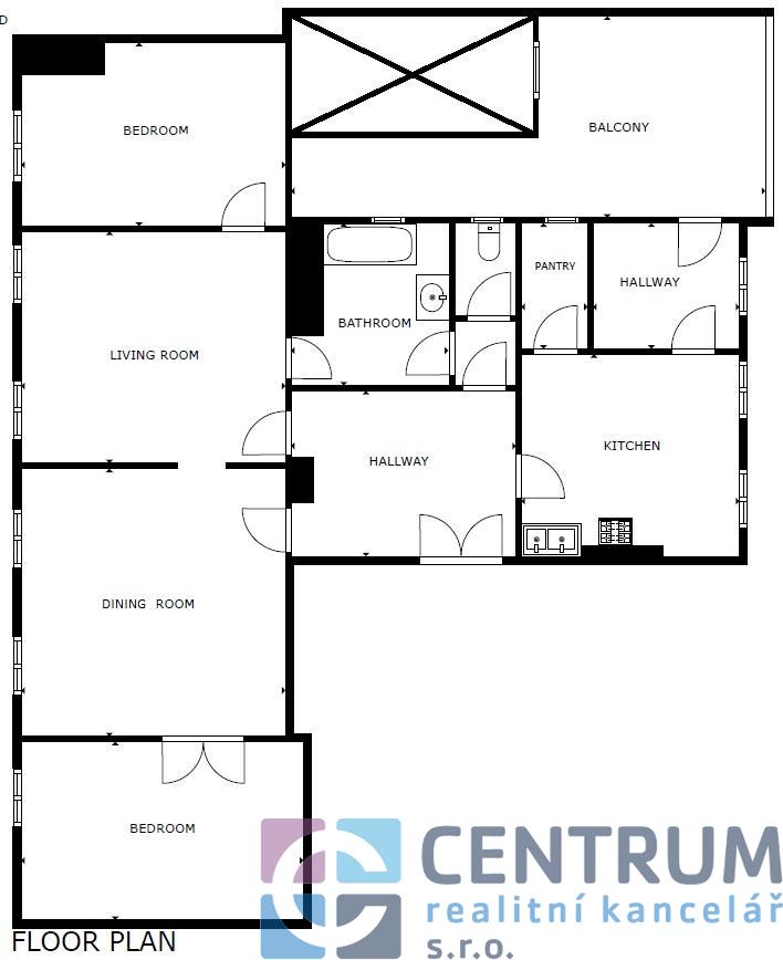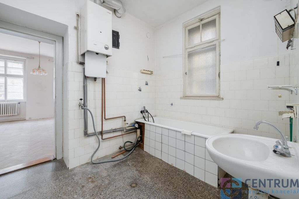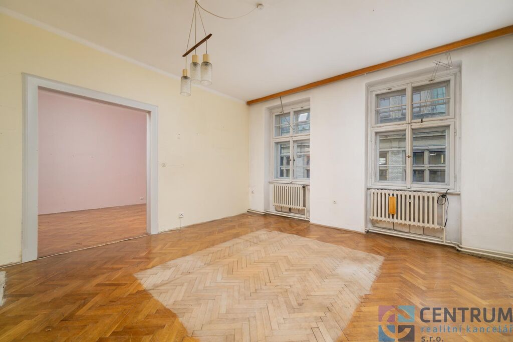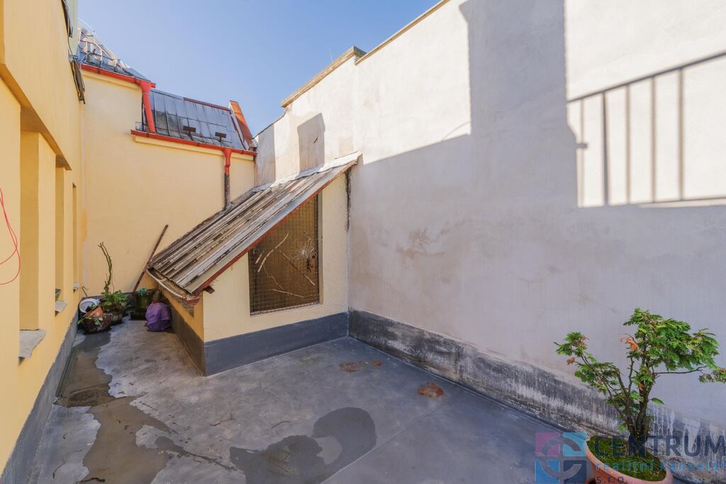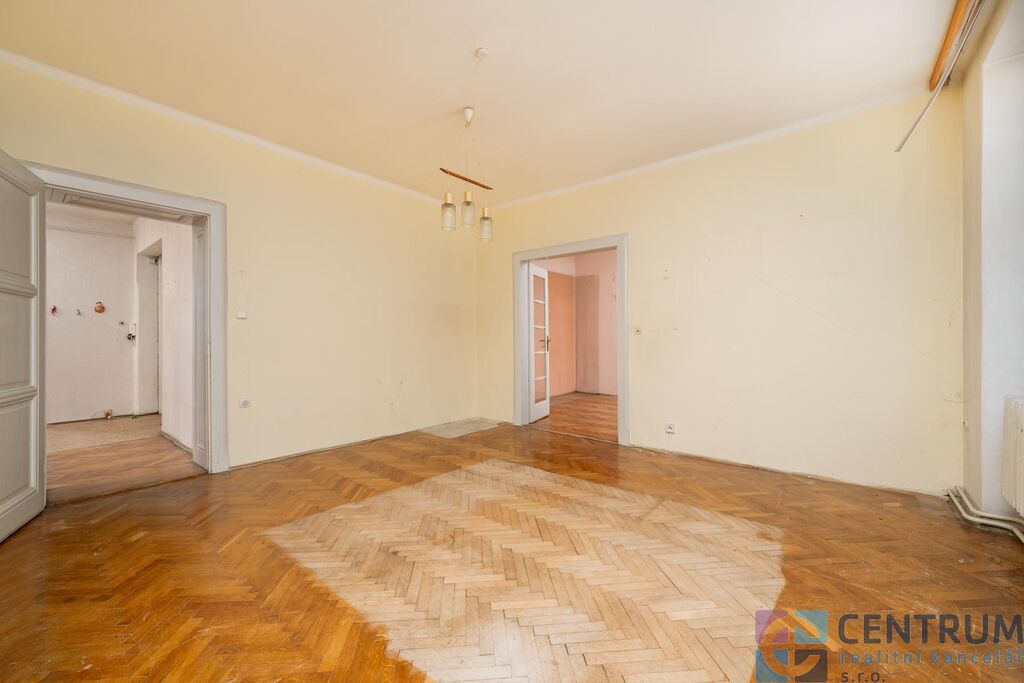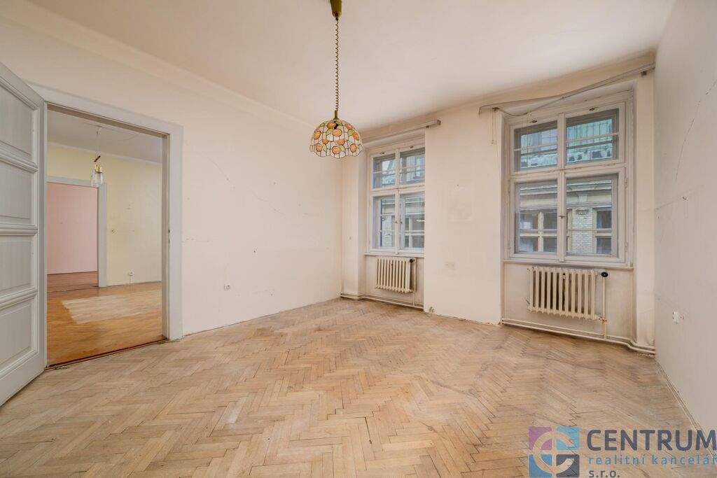 Za vstupními dveřmi nás čeká prostorná předsíň, ze které je vlevo přístup do čtyř velkých pokojů s parketami a okny na jih, rovně do prostoru sociálního zázemí koupelny a samostatné toalety, kdy koupelna je přístupná zároveň z jednoho z pokojů a vpravo do kuchyně, na kterou přímo navazuje spíž a menší pracovna se vstupem na terasu. S ohledem na původní stav bytu se v rámci rekonstrukce nabízí několik variant budoucího uspořádání. Můžete ponechat luxusní 4+1, vybudovat velké 6+kk, nebo třeba 2 byty. Střešní terasa je příjemným bonusem!