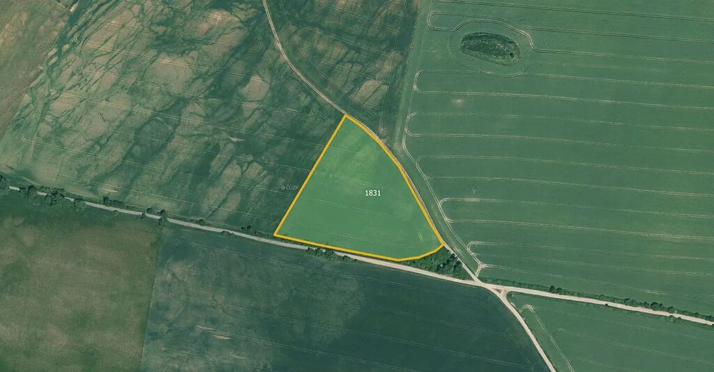 Pozemek je zapsán na listu vlastnictví č. 764 pod číslem parcely 1831 a veden jako orná půda. Celková výměra parcely činí 14 900 m², přičemž předmětem prodeje je zde odpovídajících 7 450 m².