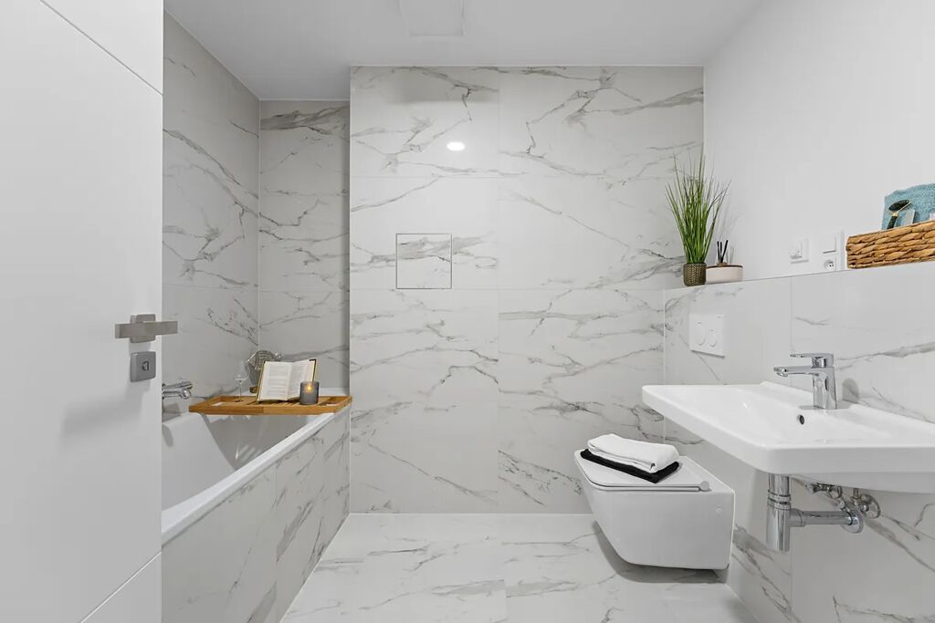 Všechny byty v projektu mají vysoký standard vybavení: kvalitní vinylové podlahy s akustickou podložkou, teplovodní podlahové vytápění, francouzská okna s izolačním trojsklem, moderní sanita značky Grohe, velkoformátové obklady v koupelnách atd.