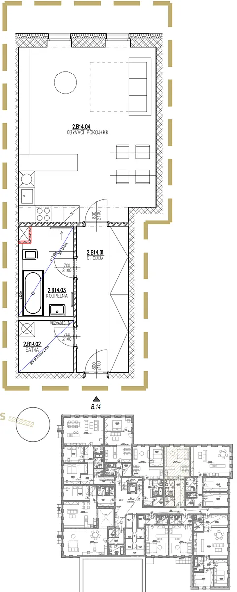 Nabízíme k prodeji byt B14 o dispozici 1+kk a celkové výměře 52,4 m² dle NOZ (čistá užitná plocha 50,5 m²). Byt se nachází v 2. podlaží a je orientován na východ. Byt disponuje velkou komorou a sklepní kójí o velikosti 2,7 m². Dostatek úložného prostoru zaručen. Cena zahrnuje i parkovací stání – vše je uvedeno včetně DPH.