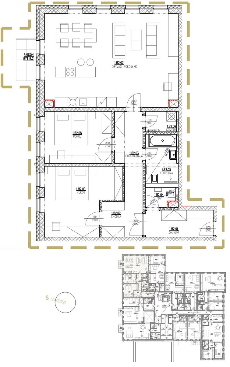 Nabízíme k prodeji byt B02 o dispozici 3+kk a celkové výměře 110,3 m² dle NOZ (čistá užitná plocha 104,2 m²). Byt se nachází ve 1. podlaží. K bytu náleží balkon o výměře 3 m² a sklepní kóje o velikosti 2,5 m². Cena zahrnuje i 2 parkovací stání – vše je uvedeno včetně DPH.