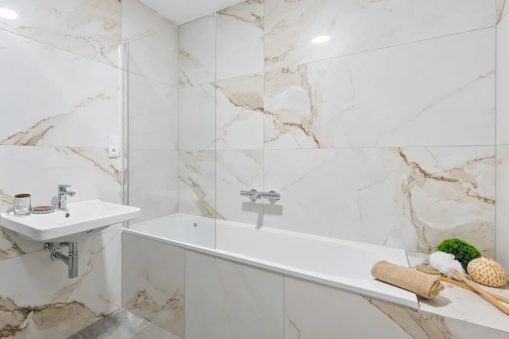Všechny byty v projektu mají vysoký standard vybavení: kvalitní vinylové podlahy s akustickou podložkou, teplovodní podlahové vytápění, francouzská okna s izolačním trojsklem, moderní sanita značky Grohe, velkoformátové obklady v koupelnách atd.