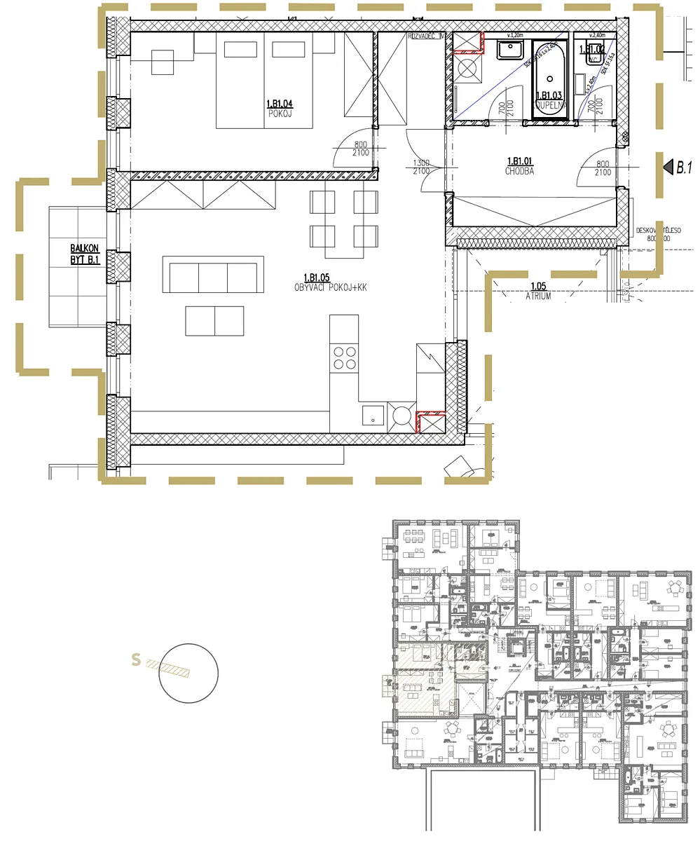 Nabízíme k prodeji byt č. B01 o dispozici 2+kk a celkové výměře 69,2 m² dle NOZ (čistá užitná plocha 66,5 m²). Byt se nachází v 1. podlaží. K bytu náleží balkon o výměře 3 m² a sklepní kóje o velikosti 2,4 m². Cena zahrnuje i parkovací stání – vše je uvedeno včetně DPH.