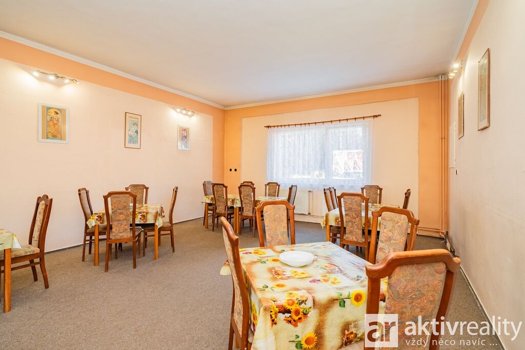 Penzion je částečně podsklepený a v suterénu cca 70m2 se nachází kotelna, uhelna a sklad. V přízemí cca 265m2 se nachází restaurace s barem – cca 55 míst, kuchyň, přípravna, sklady, sociální zařízení pro restauraci, úklidová místnost a lyžárna.