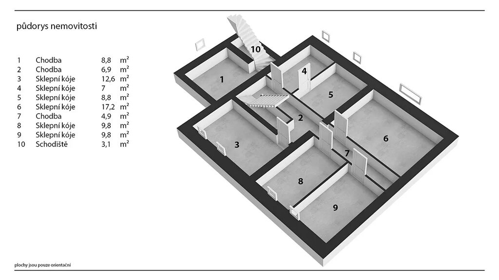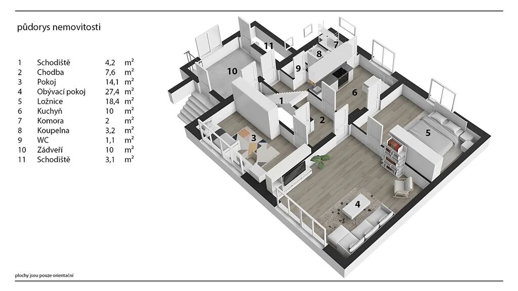 Předmětem prodeje je samostatně přístupná polovina bytového domu s vlastním vchodem a samostatným číslem popisným 142.