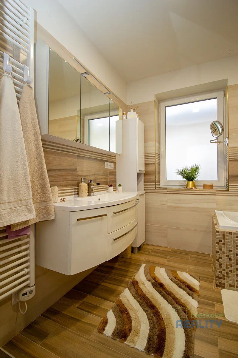 Dům je ve velmi dobrém stavu, nevyžaduje žádné úpravy ani opravy a je ihned k nastěhování. Součástí vybavení je podlahové vytápění, venkovní rolety a sítě v oknech, kamerový systém a po dohodě je možné odkoupit i nábytek.