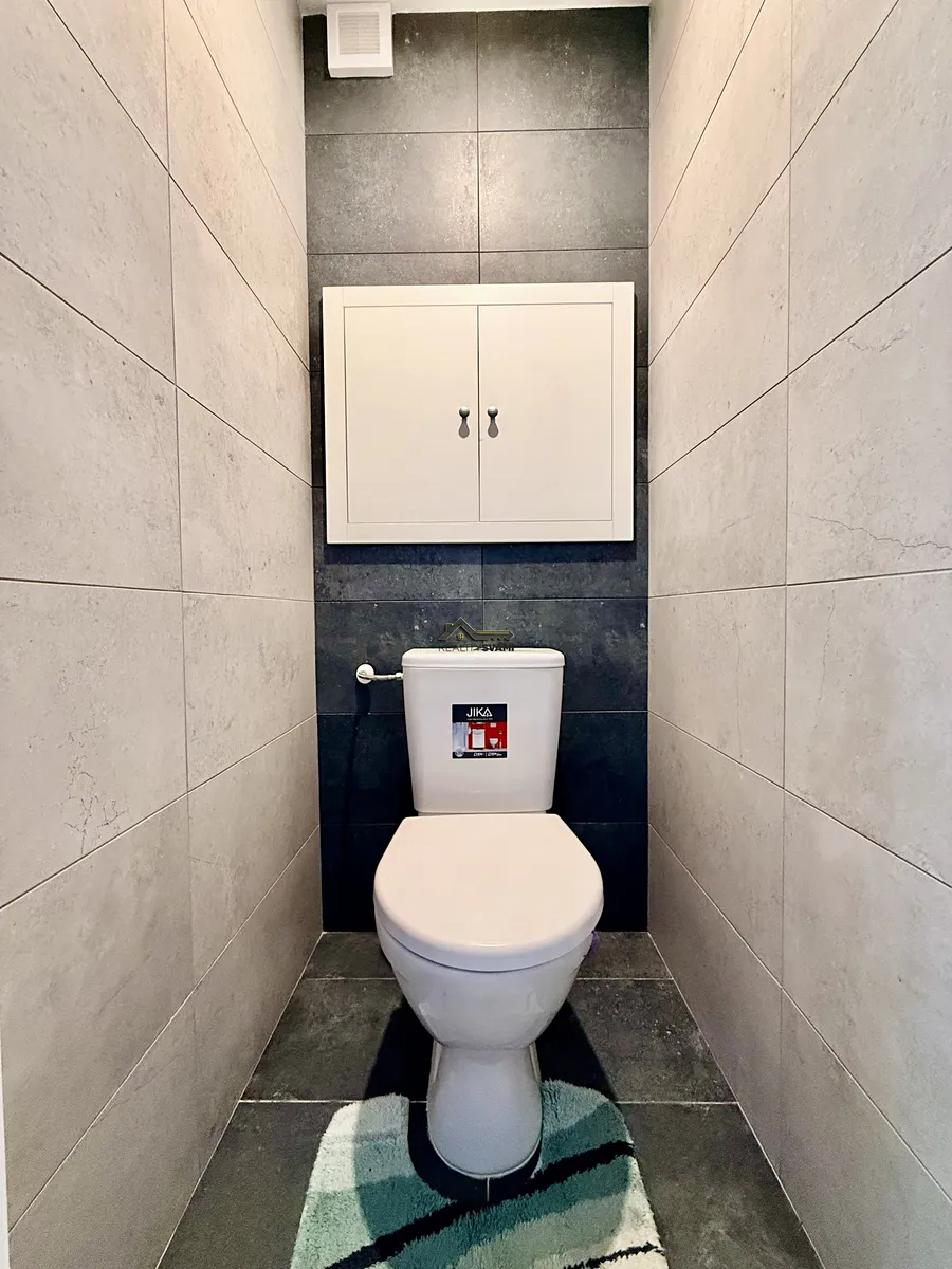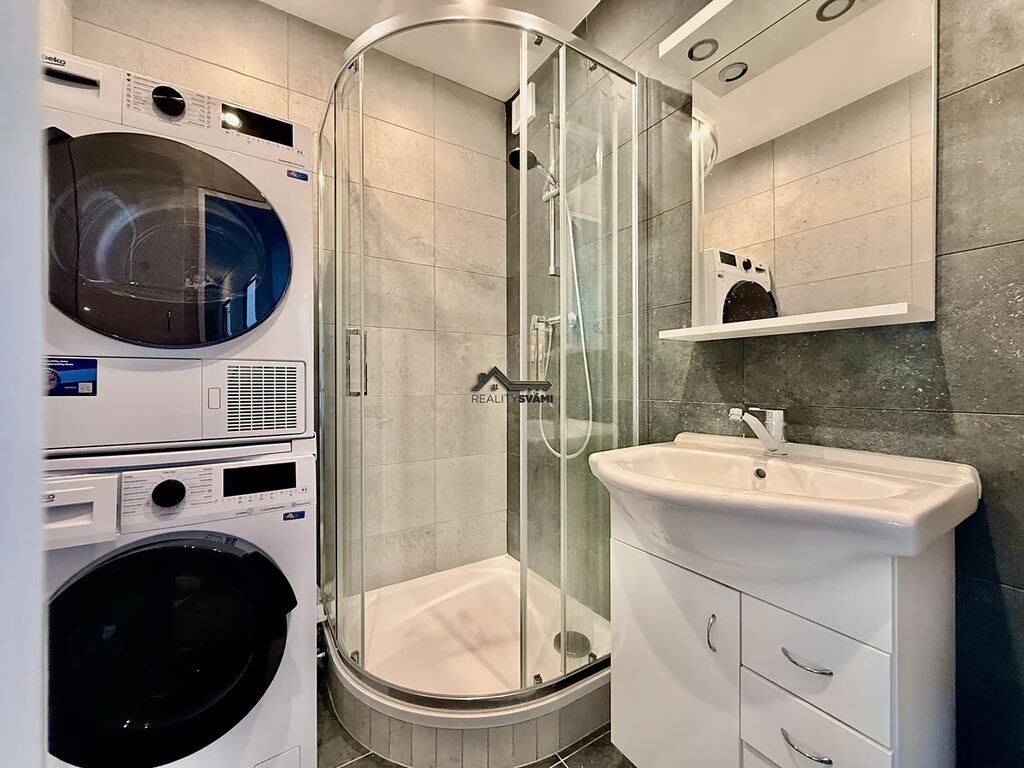 Samotný byt prošel částečnou rekonstrukcí, kdy bylo vyměněno bytové jádro za sádrokartonové a to bylo obloženo obkladem. V koupelně se dále vyměnila vana za sprchový kout a vejde se zde pohodlně i pračka se sušičkou. Vedle koupelny je ještě jedna místnost, která se může využít například jako sauna, nebo špajz. V kuchyni je dále cca rok stará kuchyňská linka s horkovzdušnou troubou s plynovou varnou deskou. V bytě jsou položeny PVC podlahy a v obývacím pokoji je plovoucí podlaha. Celkově je byt udržovaný a ihned k nastěhování.