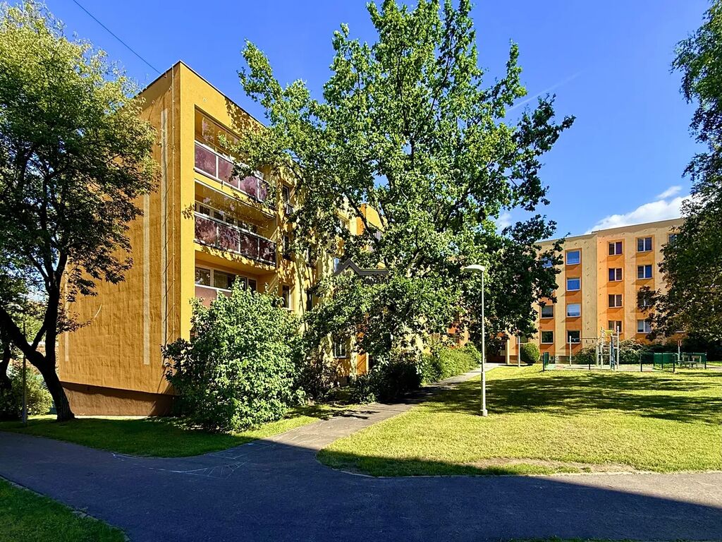 Lokalita je klidná. Lodžie má výhled na vnitřní dvůr, kde je malé dětské hřiště, dost stromů a zeleně. Přes ulici je školka a škola je také v dosahu. V blízkém dosahu je nemocnice, nebo autobusové spojení.