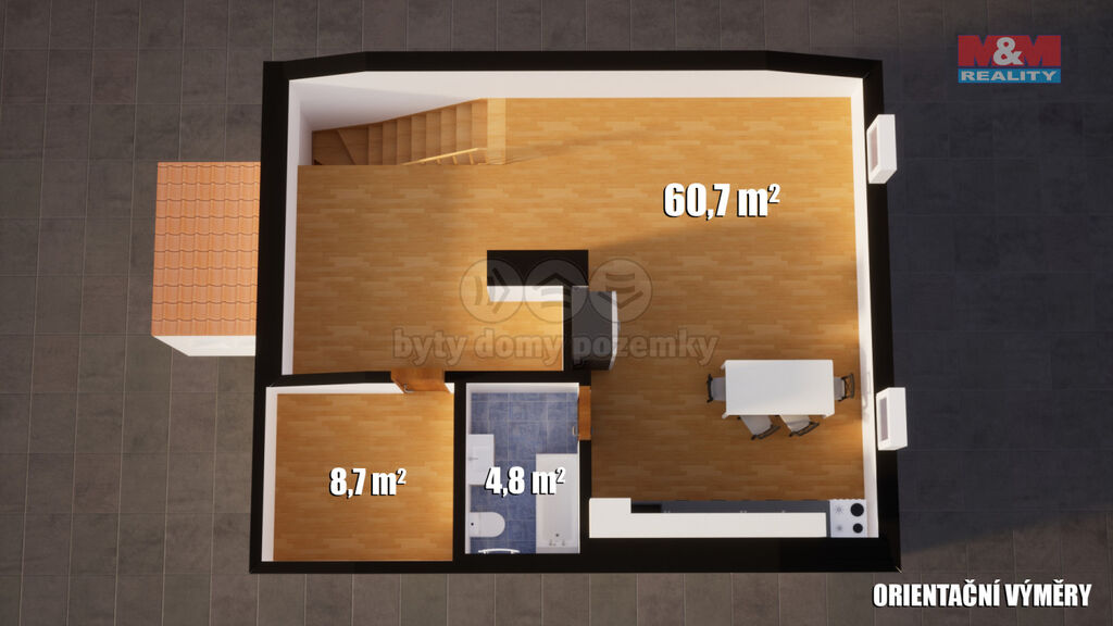 Oba byty - podkrovní i v patře - jsou v současnosti obsazeny platícími a spolehlivými nájemníky.