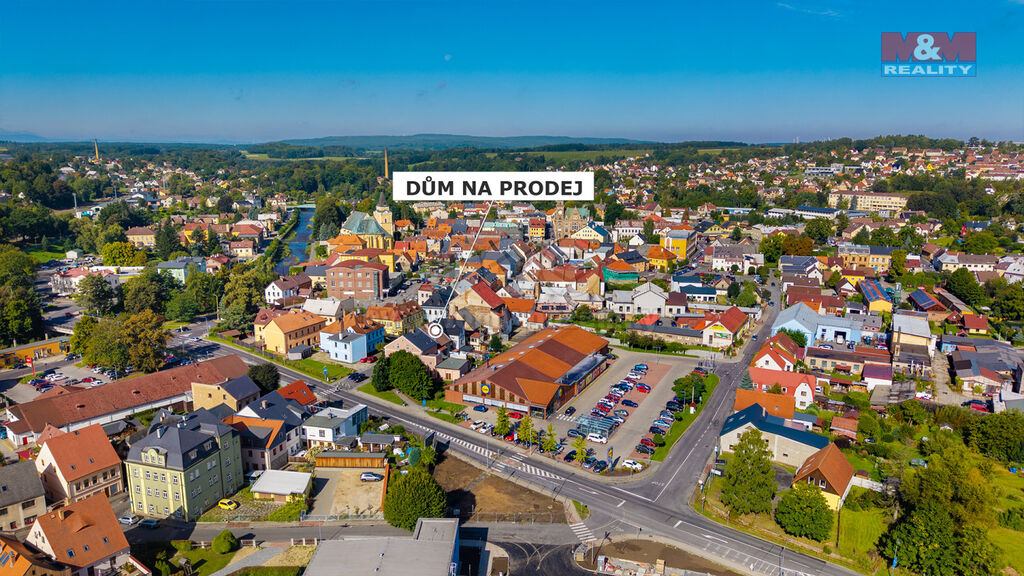 Nemovitost se nachází v samém srdci města, hned naproti hokejové haly. Strategické umístění domu zaručuje veškerou občanskou vybavenost i služby v pěší vzdálenosti. To samé platí i pro sportovní či společenské vyžití. I přes to, že dům stojí v centru města, jde o hezkou a klidnou lokalitu.