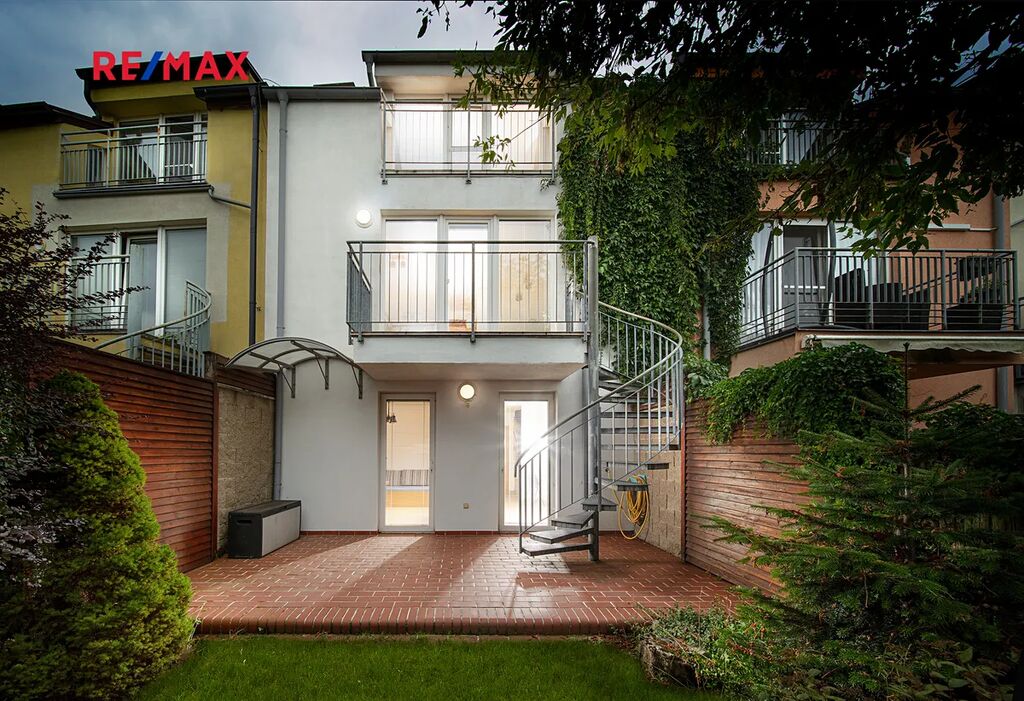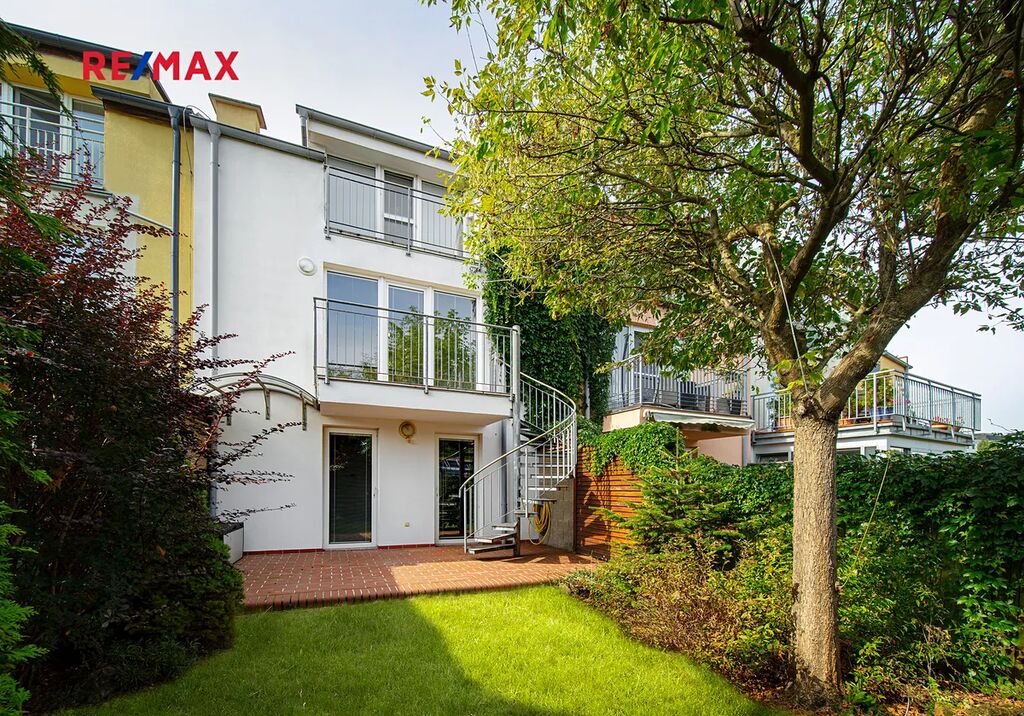 K domu náleží udržovaná zahrada s několika vzrostlými stromy a keři, na kterou je vstup buď z balkónu točitým schodištěm nebo přes krytou dlážděnou terasu přímo z domu. Toto zázemí poskytuje klid pro relaxaci a posezení s přáteli a rodinou.