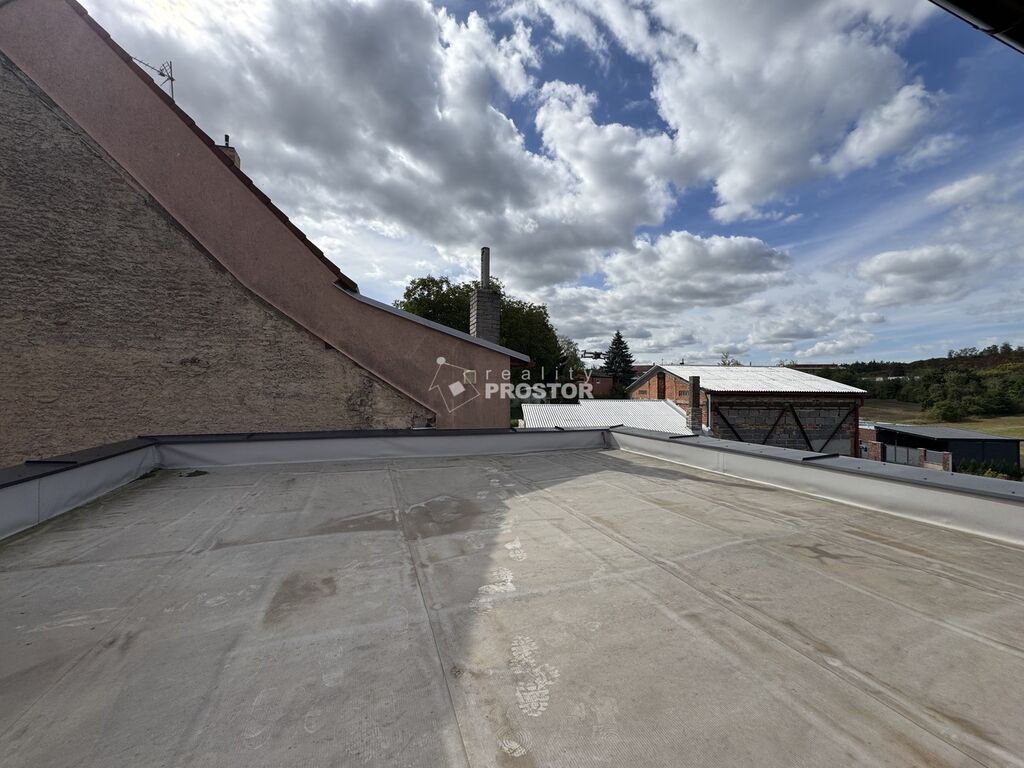 Ve 2. NP jsou tři velké ložnice z nichž je vstup na příjemně slunnou terasu s krásným výhledem do okolí (42,45m2). Dále koupelna s prostorem na sprchový kout i vanu, samostatné WC a vstup na pochozí půdu, která nabízí další úložné prostory.