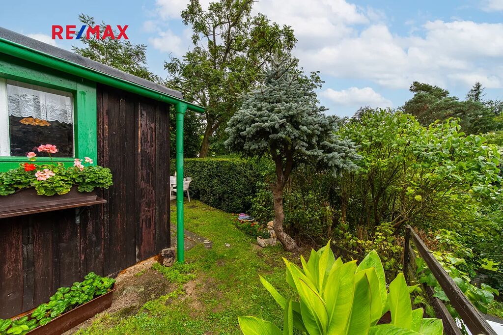 Chata se zahradou se prodává včetně veškerého vybavení a je na vlastním pozemku.