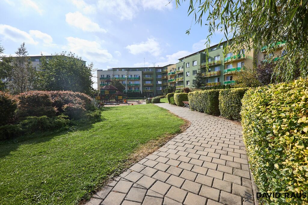 K bytu náleží terasa se zahrádkou (59,60 m²) , sklepní kóje a vlastní parkovací místo přímo před domem.