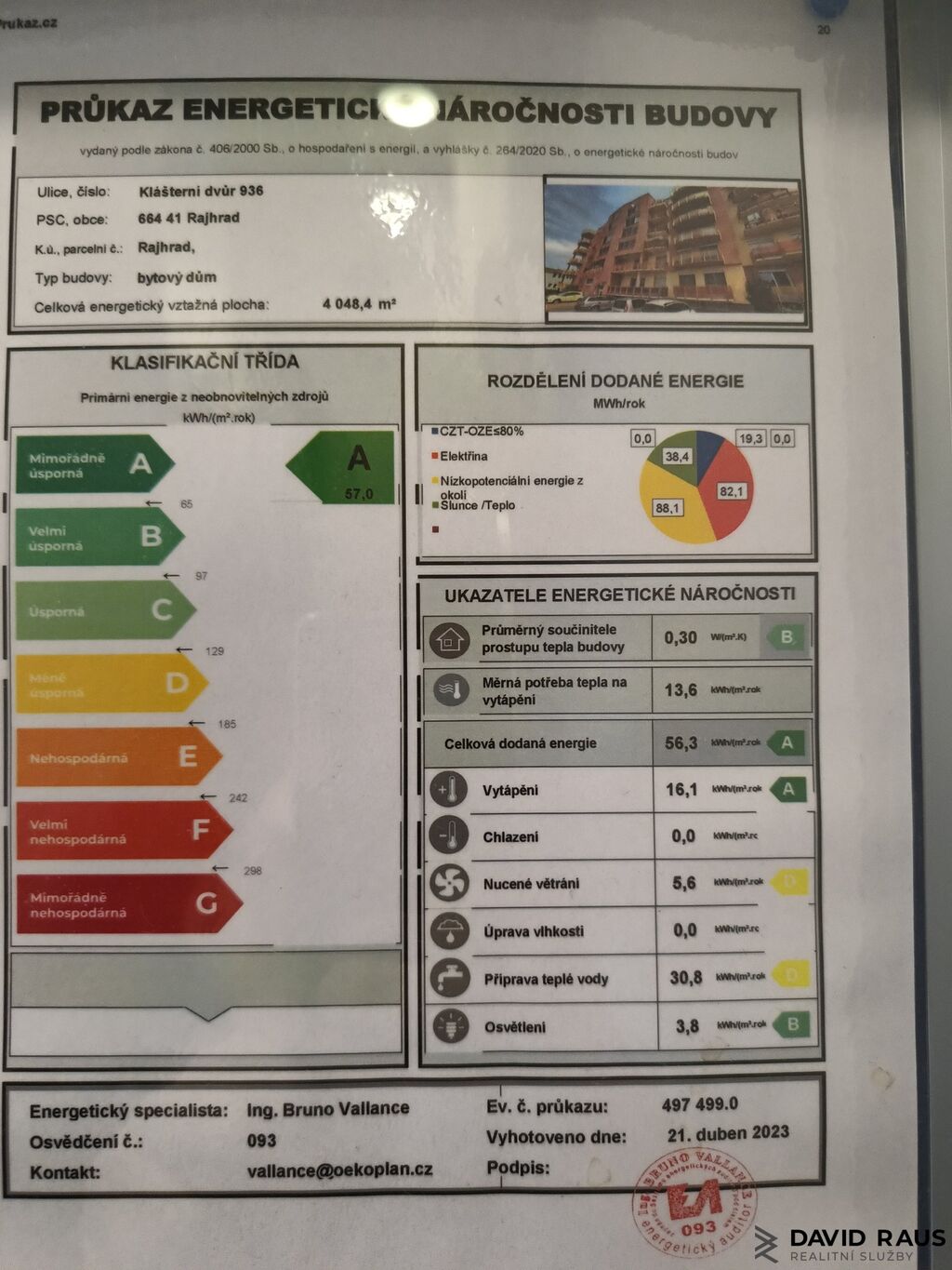 Ukazatel energetické náročnosti | 41.9 kWh/m2 za rok |