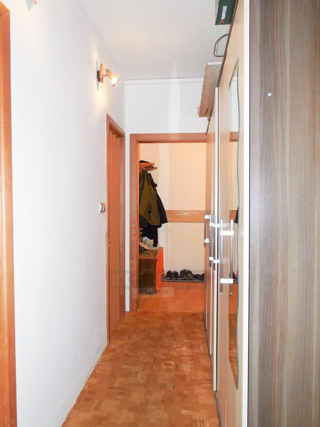 Dispozice: zádveří, chodba s šatními skříněmi, zděné bytové jádro, samostatná koupelna s menší vanou, umyvadlem a prostorem pro pračku, samostatné WC, velice prostorná, hlavní obytná místnost, samostatná kuchyň s linkou a s jídelním prostorem, všechna okna bytu s otevřeným výhledem, k bytu náleží sklepní kóje a možnost užívání všech společných prostor v domě.