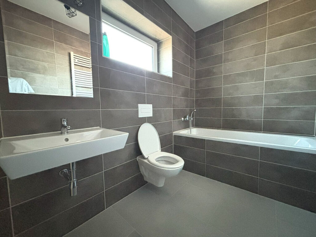 Toaleta je součástí koupelny.